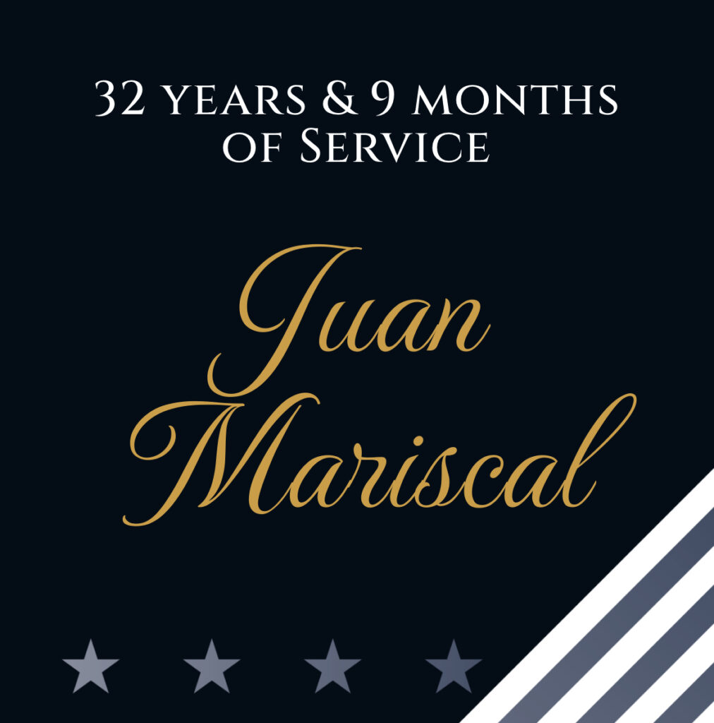 You are cordially invited to celebrate the retirement of Juan Mariscal for 32 years and 9 months of service, U.S. Homeland Security Investigations.